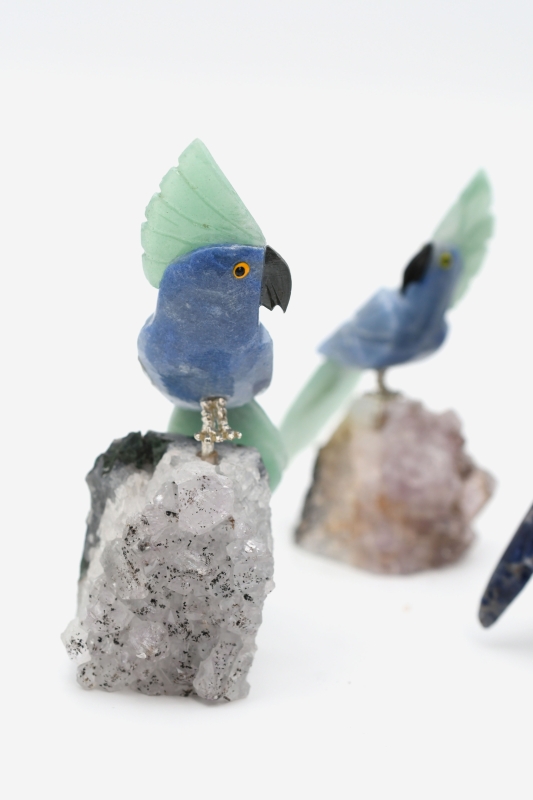 Zusatz: Den Papagei gibt es in verschiedenen Ausführungen. Es gibt Kombinationen aus Sodalith, Bergkristall und Amethyst.