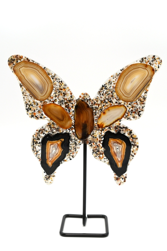 Agate Butterfly on Metal Stand Size M