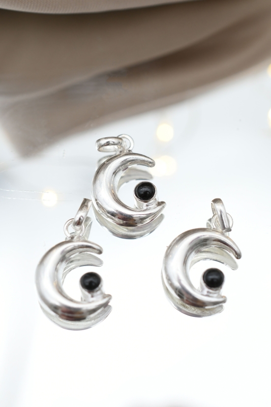 Mond Anhänger silber mit Schörl Mond Anhänger silber mit Schörl