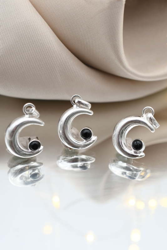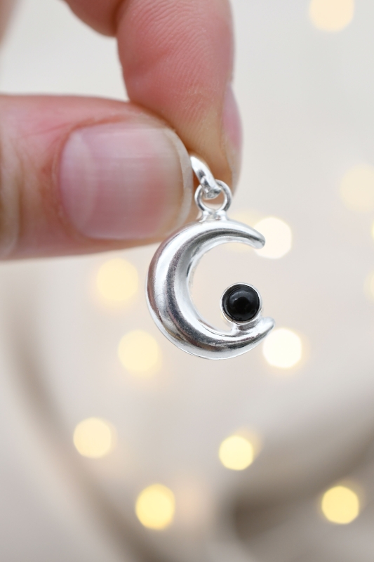 Mond Anhänger silber mit Schörl