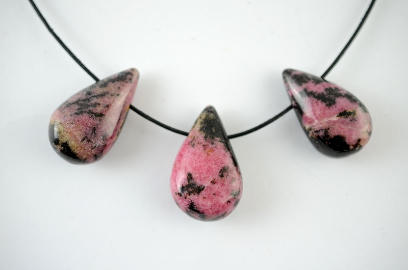 Rhodonit Drop Shape gebohrt 5-er Set