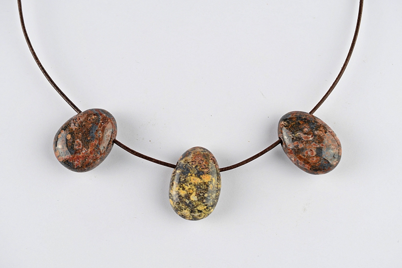 Leoparden Jaspis Trommelsteine flach gebohrt 5-er Set