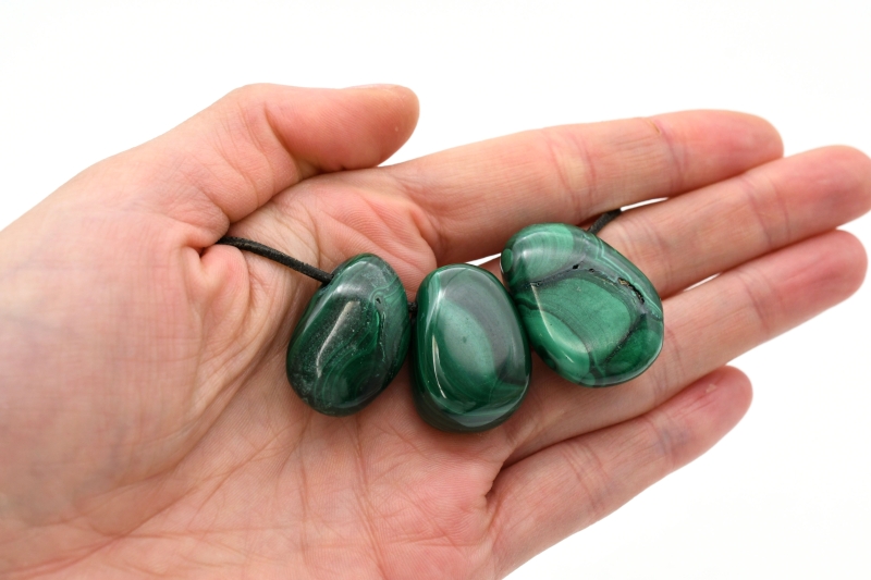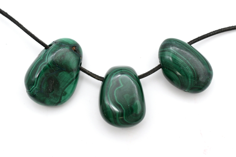 Malachit Trommelsteine flach gebohrt Malachit Trommelsteine flach gebohrt