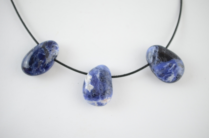 Sodalith Trommelsteine flach gebohrt 5-er Set